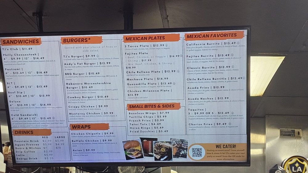 TJ's Cafe Restaurant in Brea, CA, offers a diverse menu with American, Breakfast & Brunch, and Beer Bar options. With a range of breakfast choices like the Breakfast Torta, Breakfast Burger, and breakfast burritos, customers rave about the flavorful and generous portions. Reviews mention the cozy ambiance, friendly service, and diverse clientele. Highlights include the mouthwatering Brunch Burger and the Hangover Burrito. Customers love the tasty meals and appreciate the creative decor, perfect for a relaxed dining experience. Give TJ's Cafe Restaurant a try for a satisfying meal in a welcoming atmosphere.